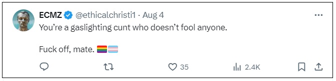 And here’s just one example of a reply that was posted on Rowling’s Twitter feed from ten days ago – and was still up before I sent this out (remember, you’ve been warned)…